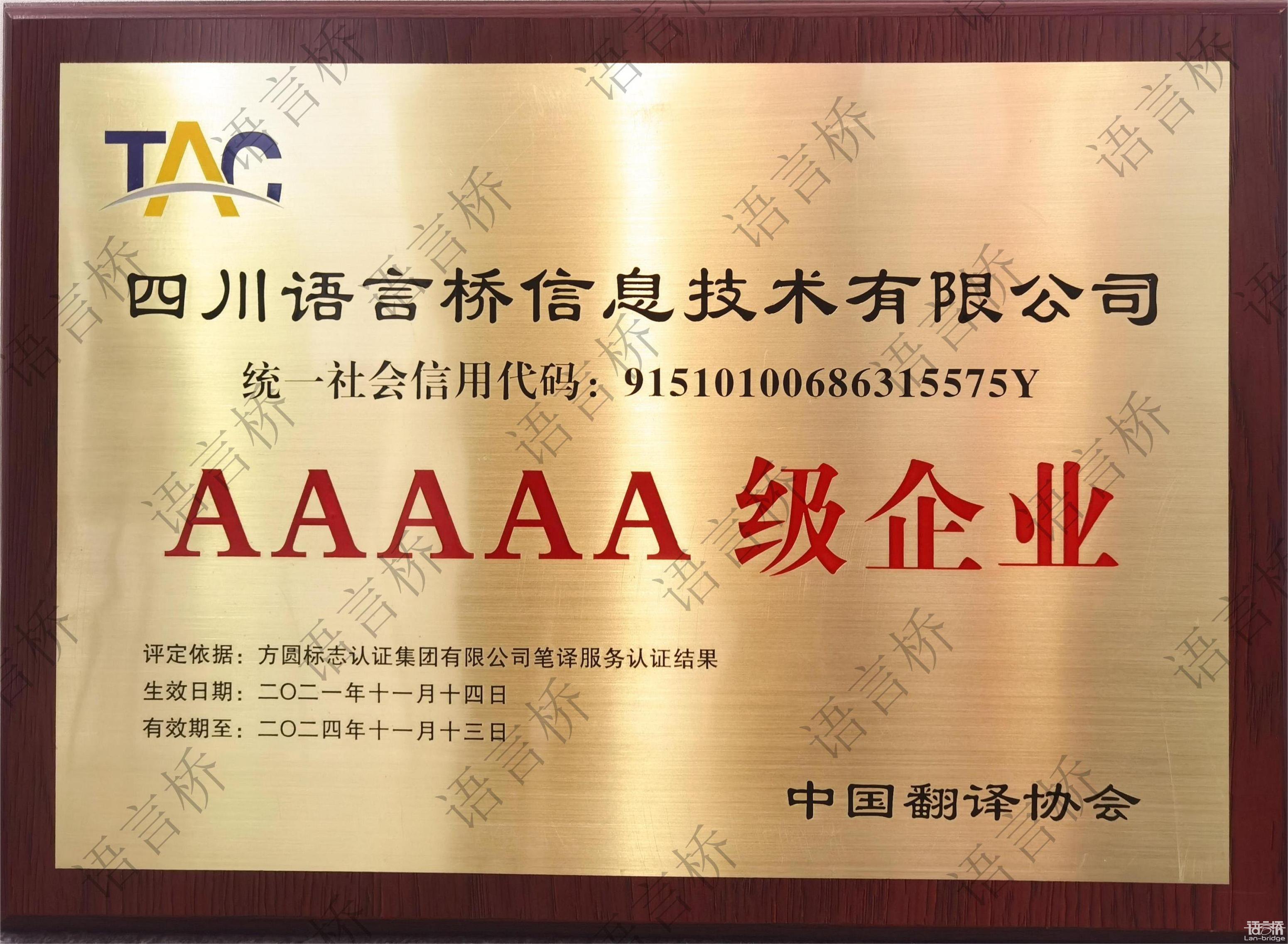 在翻譯服務(wù)企業(yè)認(rèn)證授牌儀式中,中國翻譯協(xié)會與方圓標(biāo)志認(rèn)證集團(tuán)授予語言橋集團(tuán)筆譯服務(wù)5A級企業(yè)服務(wù)認(rèn)證證書,語言橋集團(tuán)董事長朱憲超出席授牌儀式。這一殊榮也是對語言橋在翻譯服務(wù)、質(zhì)量管理、人才建設(shè)、技術(shù)創(chuàng)新等方面取得的優(yōu)異成績的肯定與認(rèn)可。