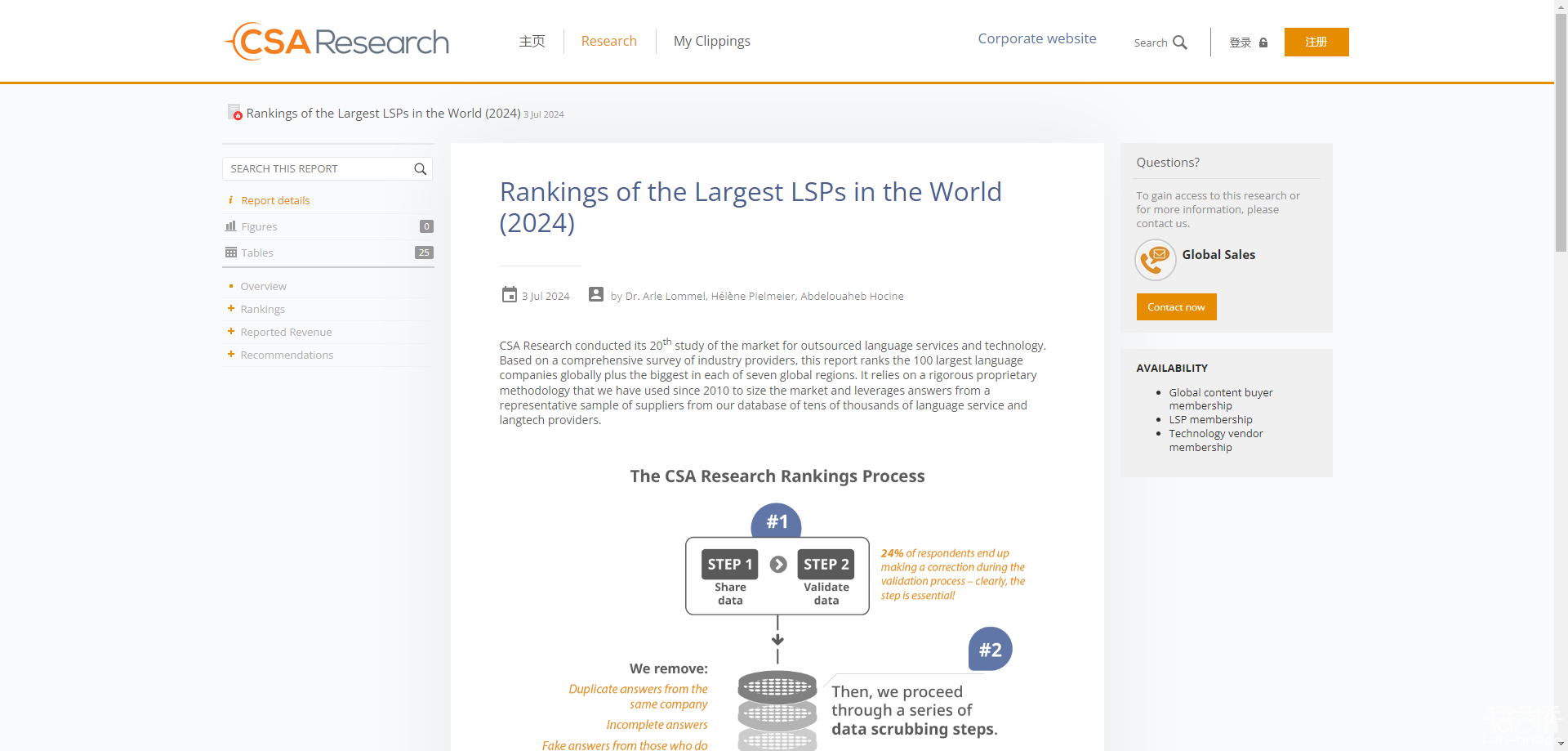 CSA Research是國(guó)際知名的語言服務(wù)咨詢公司,專注深入探討全球語言服務(wù)市場(chǎng)。他們提供廣泛且專業(yè)的服務(wù)和解決方案,包括700多份涵蓋全球化、本地化、翻譯、口譯等關(guān)鍵領(lǐng)域的研究報(bào)告,為客戶提供寶貴資源。
