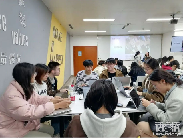 交流中,江世勇院長對語言橋在校企合作方面的理念表示高度贊賞,特別是公司在打造實踐平臺、項目實訓等方面的創新舉措。李路總監對新數智時代人才實踐通道、外語專業建設給予了建議,雙方就如何深化翻譯人才培養、師資實訓、項目共建以及學生實習等議題進行了深入探討,并達成了一系列共識。此外,江院長一行還看望了在語言橋工作的外國語學院畢業生,聽取他們對翻譯人才培養的建議,并鼓勵他們繼續發揮校友作用,為學弟學妹的職業發展提供支持。隨后學院組織了專業見習活動。11月18日,在應用英語系王林主任和陳析西副主任的帶領下,樂山師范學院外國語學院翻譯專業2022級全體學生赴語言橋開展專業見習活動。此次見習活動由語言橋精心籌備安排,公司各部門專家和資深譯員共同參與,確保活動的實踐性和可行性。見習活動圍繞翻譯實踐、項目研討以及職業規劃三大主題展開。A事業部的李芙瑤老師介紹了當前主流翻譯技術工具及其應用場景,強調了A技術在翻譯行業中的重要性及挑戰。社科部資深譯員楊洋老師結合工作實際案例,分享了社科領域翻譯的要點與技巧。圖書實踐項目中,同學們分組實際操作后,圖書組周傳蘭老師對各小組的成果進行了點評和指導。