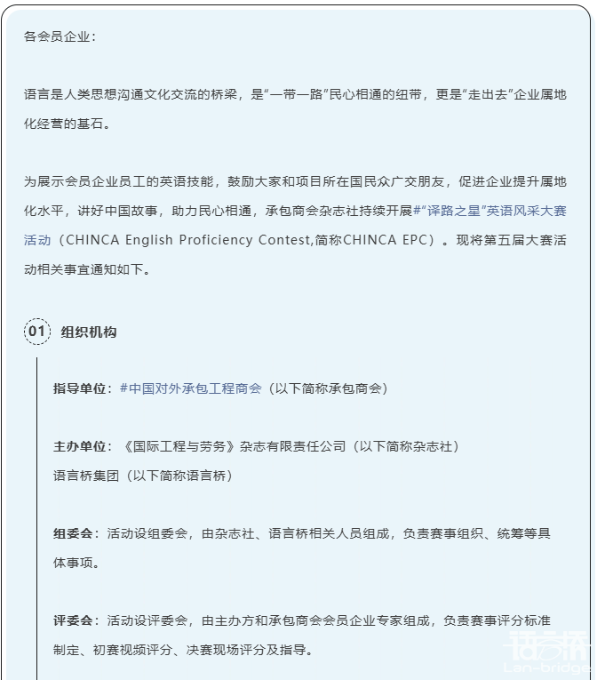 CHINCA EPC|關于舉辦第五屆“譯路之星”英語風采大賽活動的通知