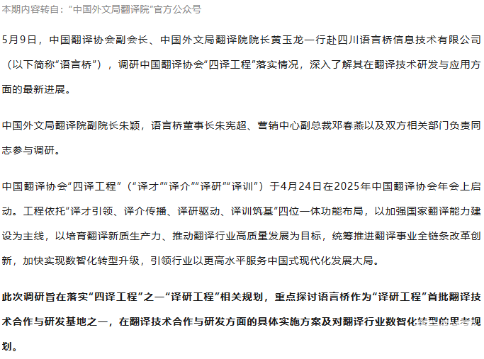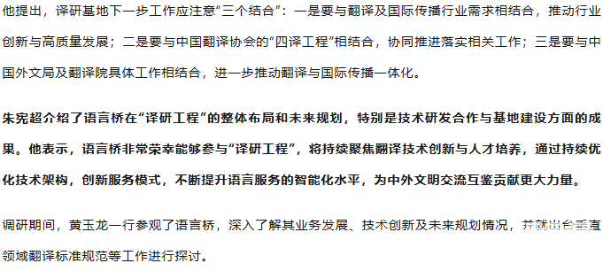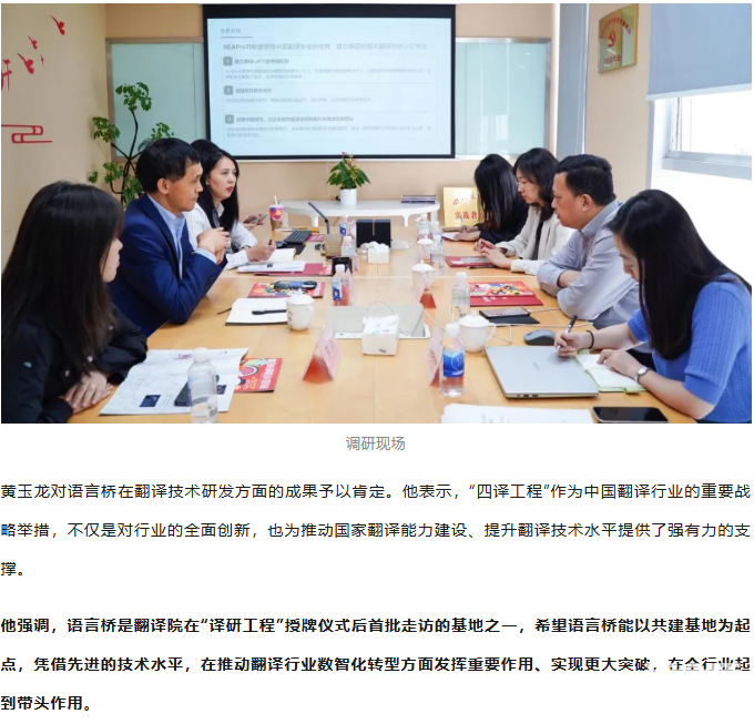 黃玉龍赴語言橋調(diào)研中國翻譯協(xié)會“四譯工程”落實情況