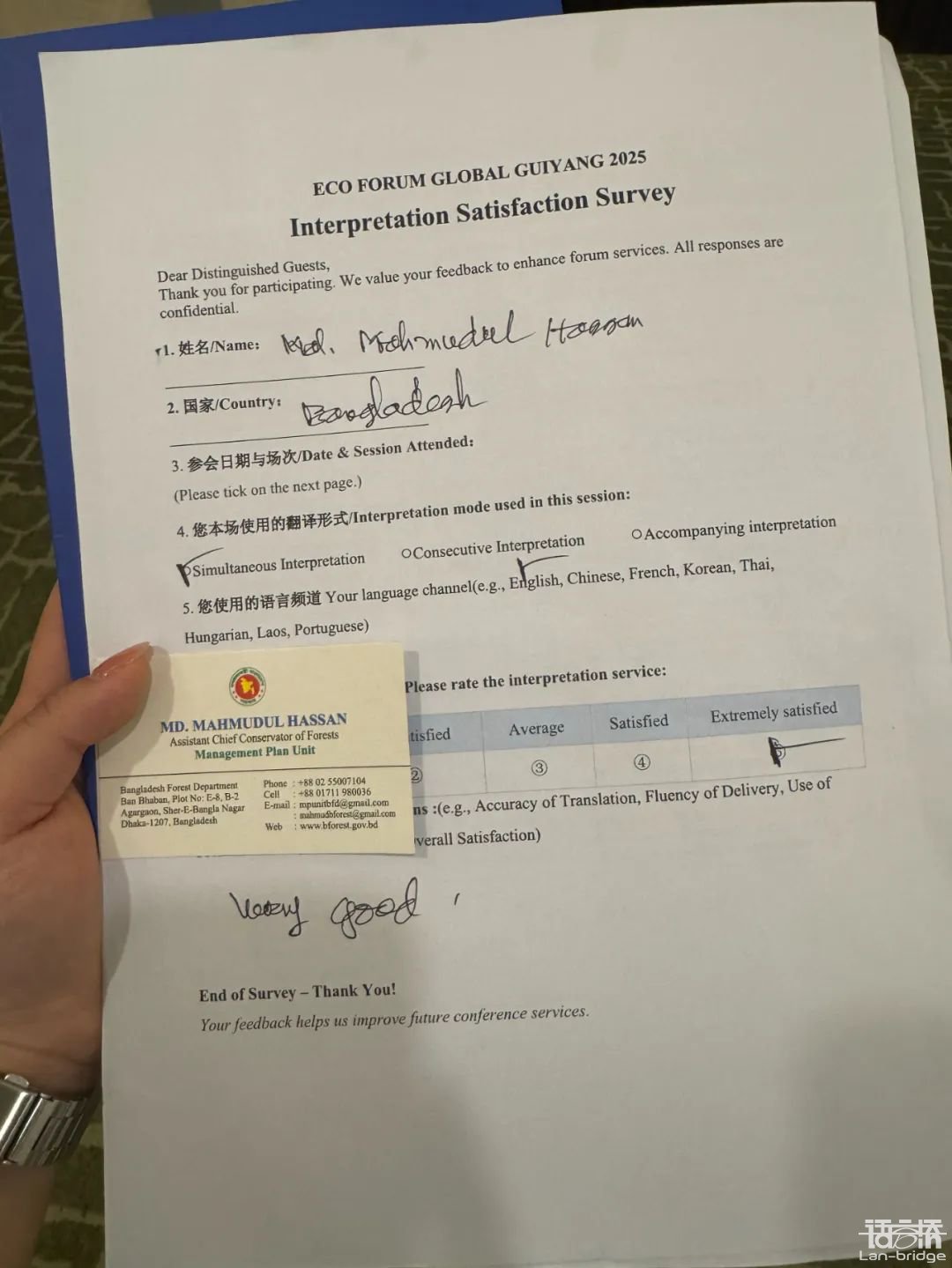 在論壇召開前,語言橋組織譯員深入學(xué)習(xí)論壇背景資料,包括貴州省生態(tài)建設(shè)政策、綠色產(chǎn)業(yè)發(fā)展報告等,并針對不同語種進行術(shù)語統(tǒng)一,確保翻譯的專業(yè)性和一致性。